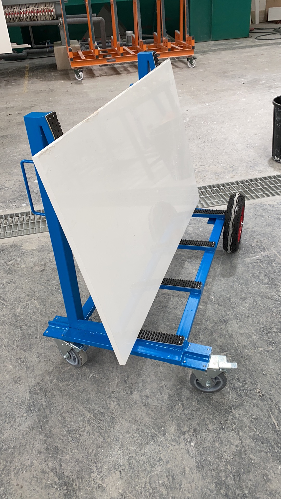 此設計用于廠區內外的板材運輸和儲存,支架表面覆蓋一層橡膠層,保護板材免于刮傷。